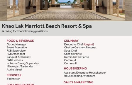 Phang Nga Job Poster Khao Lak Marriott Beach Resort and Spa by admin November 23, 2024 Join us at Khao Lak Marriott Beach Resort and Spa Be yourself, Begin your ... Read More