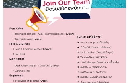 Phang Nga Job Poster Ramada Resort By Wyndham Khaolak by admin November 22, 2024 Ramada Resort By Wyndham Khaolak เปิดรับสมัครพนักงาน และนักศึกษาฝึกงานหลายตำแหน่ง ที่สนใจร่วมงานกับเรา หรือเป็นส่วนหนึ่งกับเรา สามารถส่งResume มาได้ที่ 📌 CV: jobs@ramadakhaolak.com ... Read More