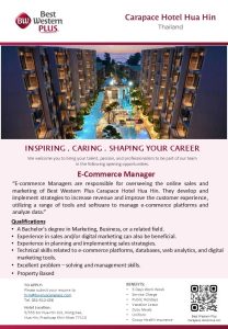 Best Western Plus Carapace Hotel Hua HinBest Western Plus Carapace Hotel Hua Hin is looking for the talent, passion, and professionalism to be part of our team.